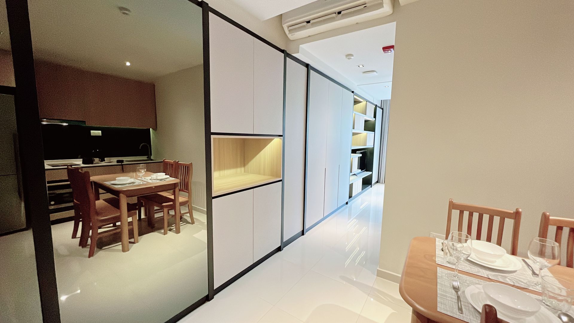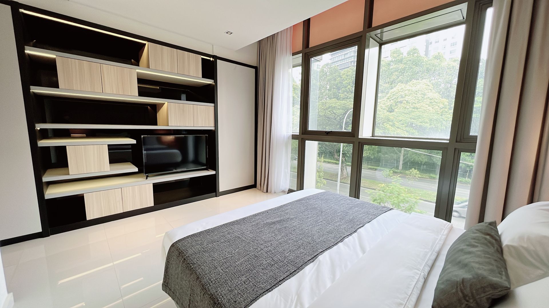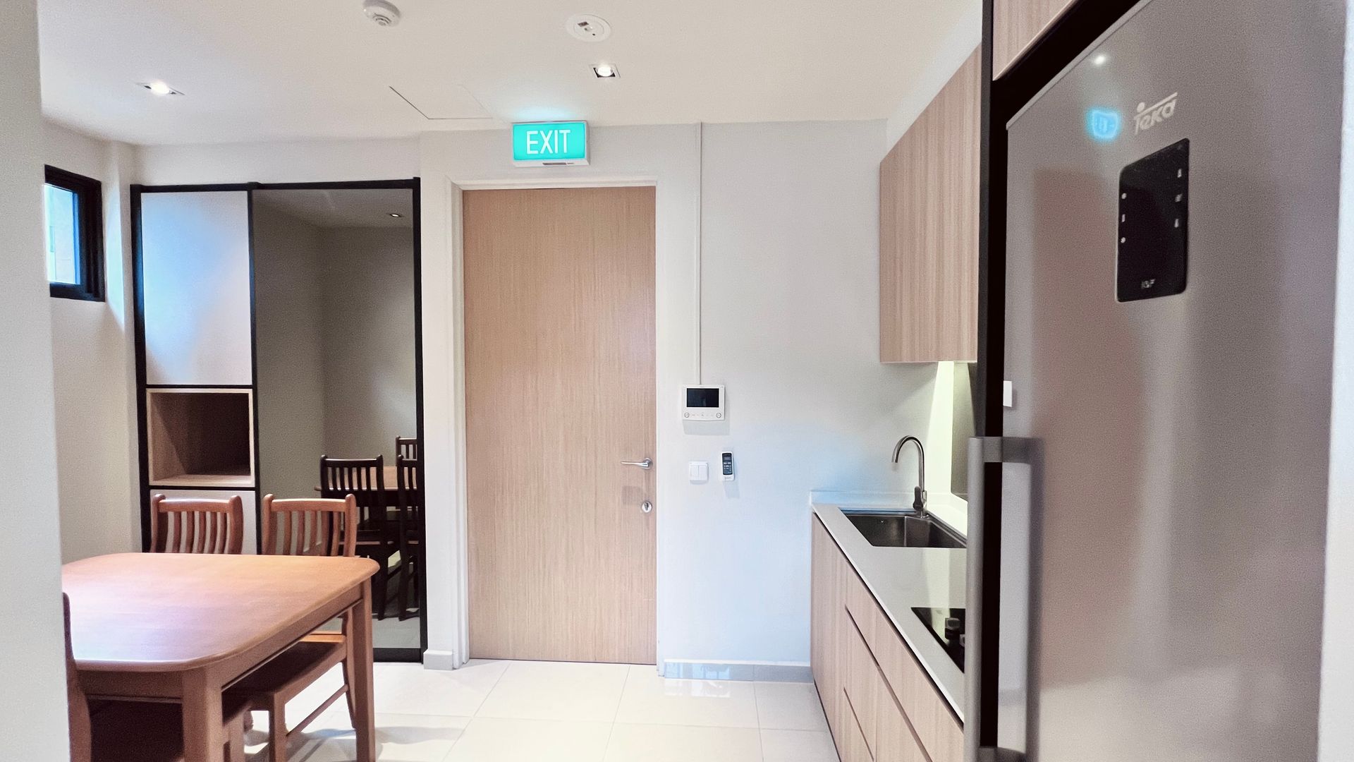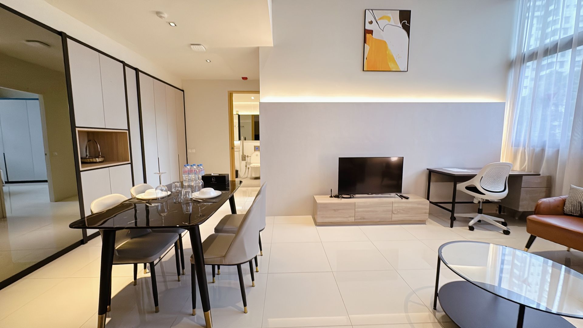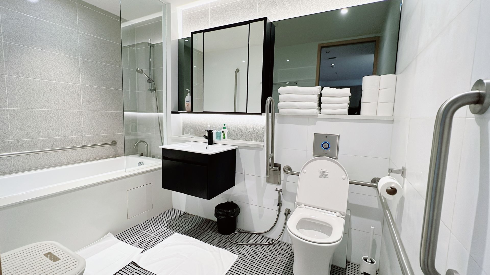 A spacious and well-appointed suite ideal for families or small groups. Features a comfortable queen-size bed, with a sofa bed accommodating up to two additional guests (available at an additional charge), a private kitchenette, and a modern en-suite bathroom with a bathtub and overhead rain shower. The suite is equipped with high-speed Wi-Fi, a washing machine, cooker hob and hood, full-sized fridge, smart TV, air-conditioning, and a dedicated living or dining area—offering comfort and flexibility for both short and extended stays.